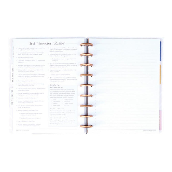 Cherish life's best moments with this undated Baby on the Way pregnancy planner. Plan for the next 9 months and beyond with this planner tailored for new mums. Our pregnancy layout contains 6 dividers with trimester checklists, general planning, and places for notes on baby's arrival. Plan for each trimester, list your newborn necessities, and compile your nursery needs with this helpful planner layout made to prepare for pregnancy. The Classic Happy Planner is our most popular planner size and has the perfect amount of space for writing, planning, and prioritizing projects. Dimensions: 7" x 9.25.