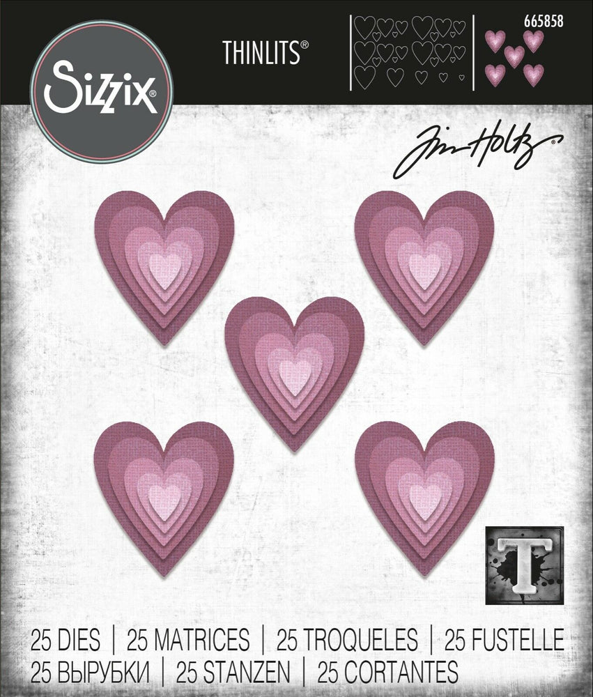 Sizzix Tim Holtz Alterations Thinlits Die - Stacked Tile Hearts