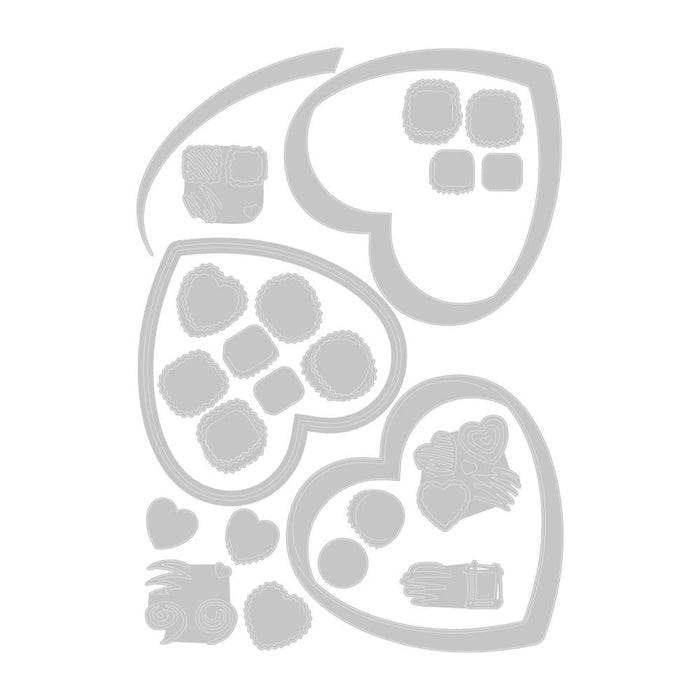 Send lots of love with this Colorize Thinlits set by Tim Holtz! From Valentine's Day to Mothers' Day, this sumptuous chocolate design is sure to impress! Each wrapped treat is individual and can be arranged and rearranged however you like, for a unique and fun outcome every time! Pack includes 24 dies approx dimensions 10.5cm x 10.2cm - 0.6cm x 0.6cm