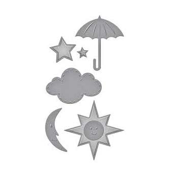 Triple-functioning dies that can be used in most die-cut systems. 7 dies. Cut shapes, emboss, or stencil. Cloud is 2"x1.3".