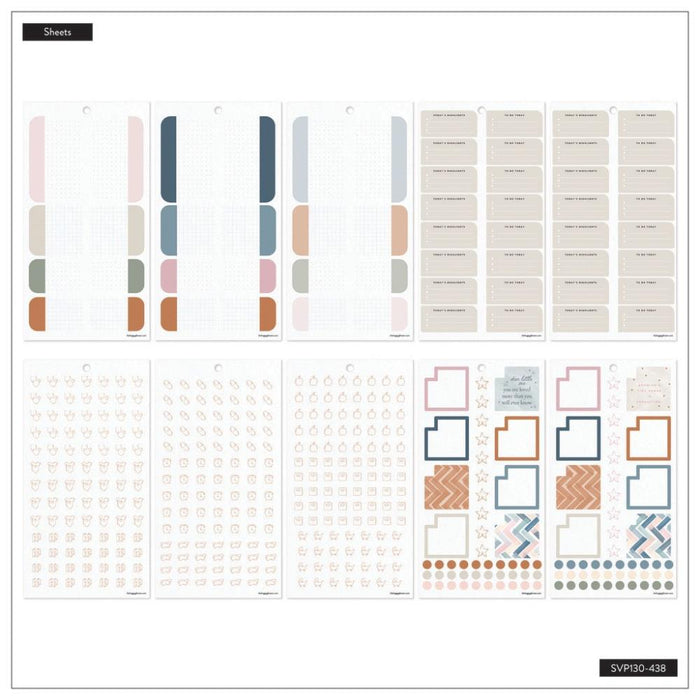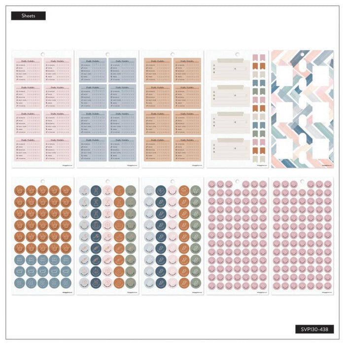 This Baby on the Way pregnancy sticker value pack was made for future mammas! Plan every step of the next 9 months until your little bundle of joy arrives. 30 sheet sticker book with 1146 Baby on the Way pregnancy themed stickers. Fitted for Classic size Happy Planner items. Matte paper stickers and decorative stickers to add to your monthly calendars and weekly spreads. Combination of weekly countdowns, appointment reminders, daily habit trackers, and more. Dimensions: 9 x 0.25 x 4.75