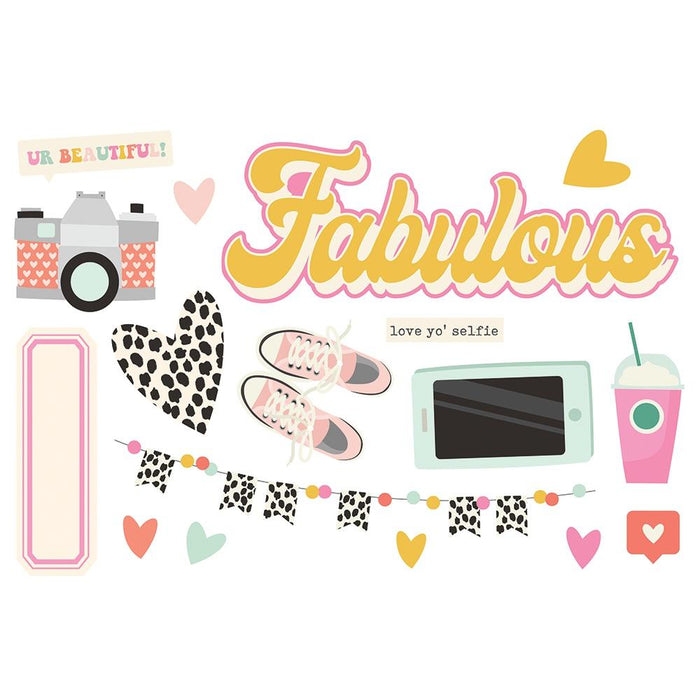 Simple Pages Page Pieces are your grab-and-go solution for scrapbooking. Each die-cut set includes a large title, themed images, accents, and a place to add journaling. 17 pieces.