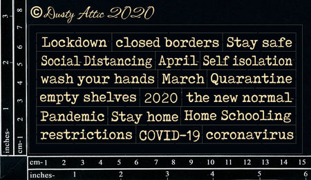 Covid 19 Filter By... Covid 19 Sold out Sale £0.99 £0.55 Photoplay The New Normal - T-Shirts Sold out £3.20 Dusty Attic - Covid-19 Word Pack #1 £2.99 Dusty Attic - Covid-19 Icons £2.60 Dusty Attic - COVID-19 £3.20 Dusty Attic - Covid-19 Word Pack #2 £3.85 Dusty Attic Stencil - Covid 19 Sale £13.99 £9.75 Photoplay The New Normal - Clear Stamps £2.99 Dusty Attic - Covid 19 Wordpl@y Black £2.99 Dusty Attic - Covid-19 Wordpl@y £3.50 Dusty Attic - Covid 19 Biohazard Borders