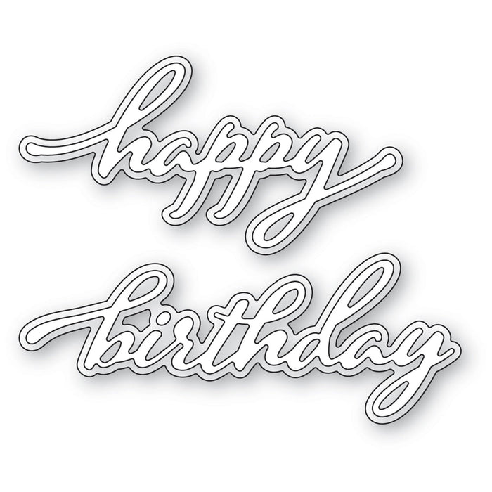 100% steel craft die for use on cardstock, felt, fabric and more. Can be used in most leading die cut systems. 3.2 x 1.6 inches happy, 3.3 x 1.7 inches outer, 3.7 x 1.4 inches birthday, 3.8 x 1.5 inches outer
