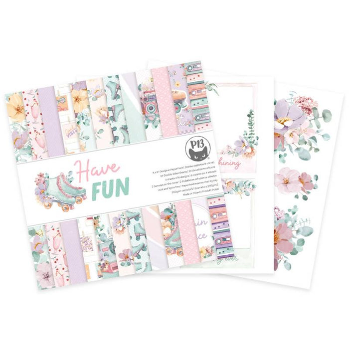 Pad of 12 double-sided 12x12 papers, 2 sheets of 6 designs. 2 bonus sheet on the inside covers.