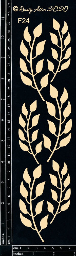 Laser cut chipboard, approx 11.75" x 2.75". 6 pieces largest leaf approx 3.5" long