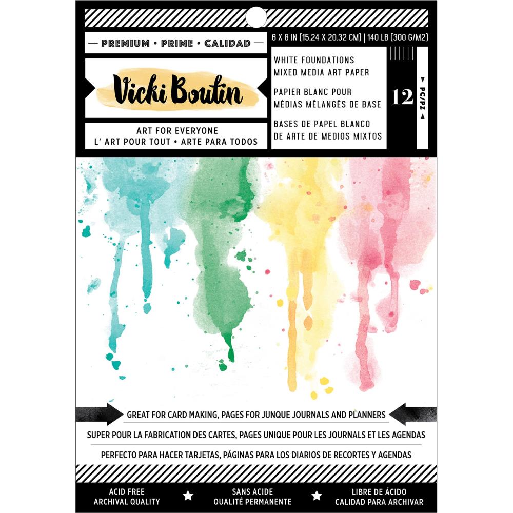 Pack of 12 6x8 sheets of ready-to-use plain mixed media pape. Perfect for use with wet or dry mediums including watercolor, paint, gesso, art crayons and more.