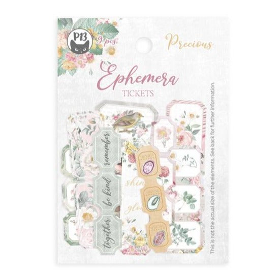 Pack of paper die cut ephemera.  9 Pieces (24 tickets), size from 90 x 30mm, to 80 x 40mm