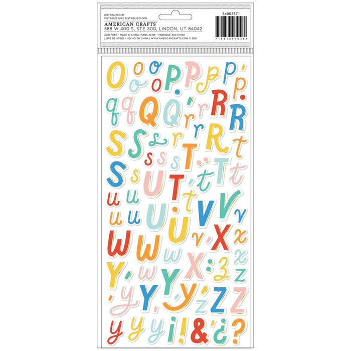 This package contains two 5.5x11 inch sheets with 183 foam and cardstock alphabet stickers.