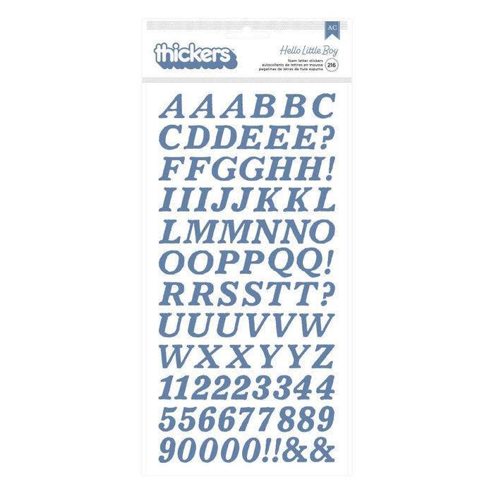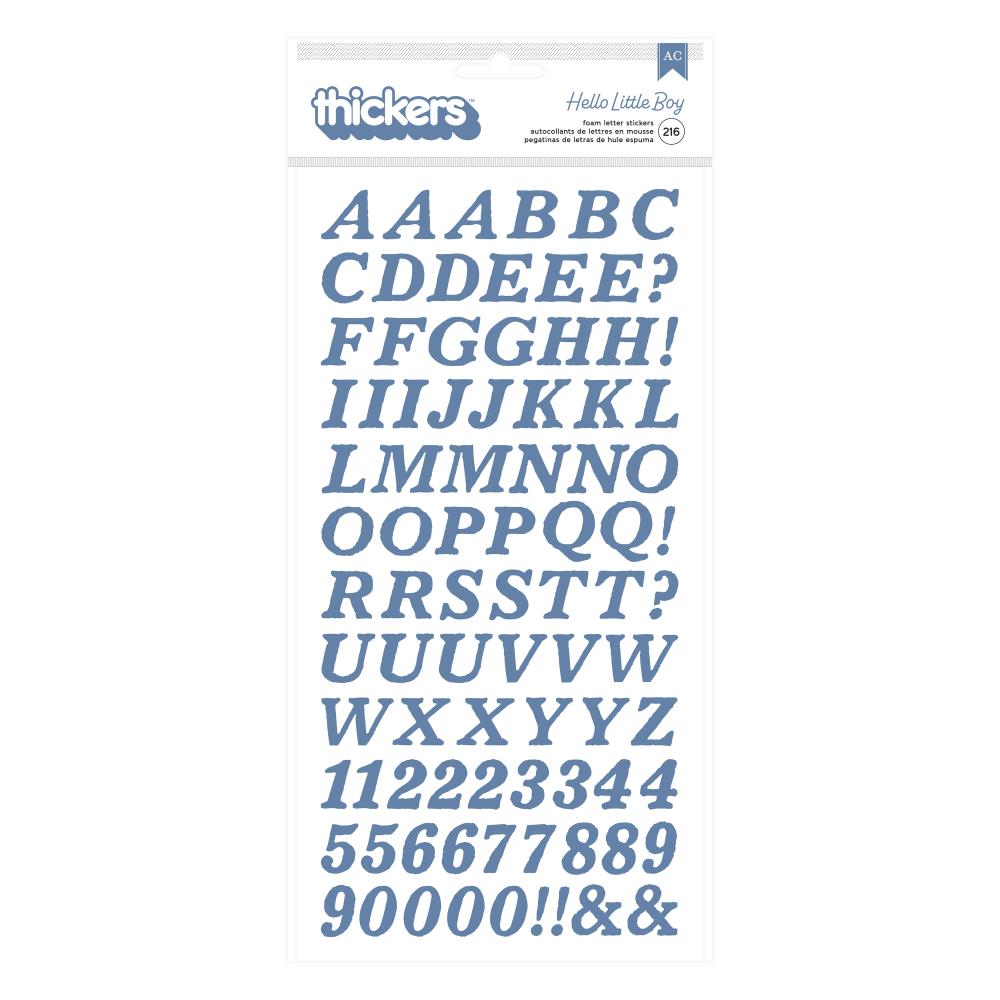 216 foam alphabet thickers on two sheets measuring approx 5.5"x12". Capitals are 1.5cm high.