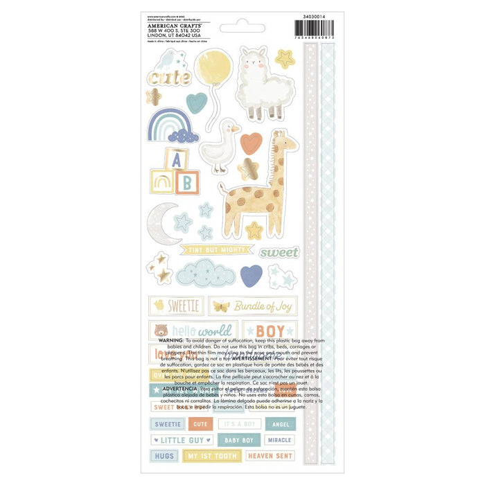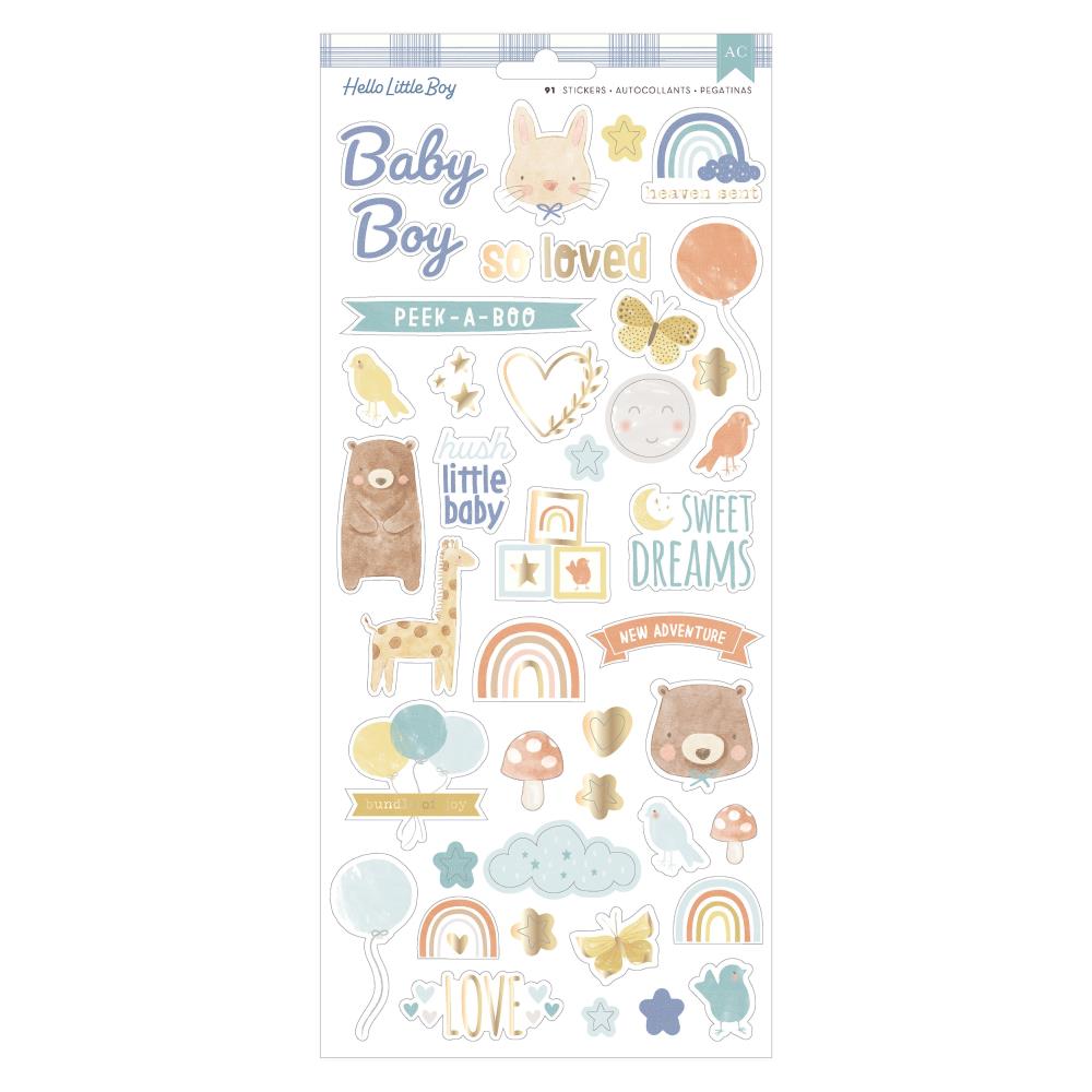 Two sheets of cardstock stickers, approx 5.5"x12". 91 pieces with foil accents.