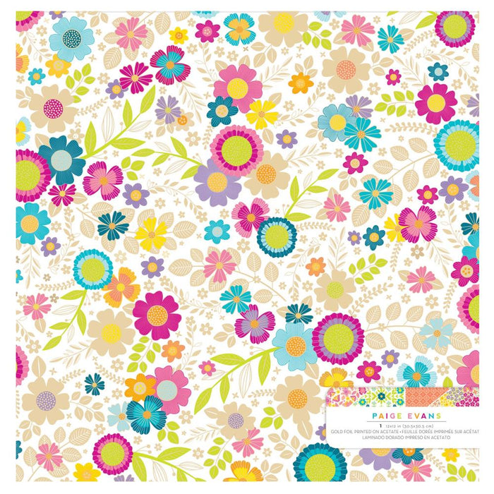 12x12 double-sided scrapbook acetate with gold foil accents.