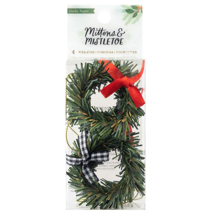 This package contains Crate Paper Mittens & Mistletoe Wreaths, four pieces.