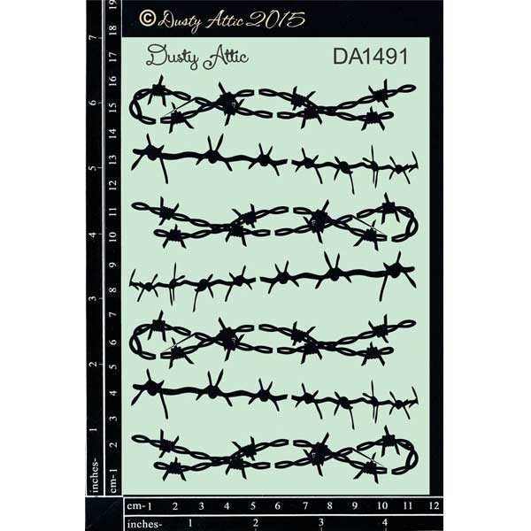 Click or scroll to zoom Tap or pinch to zoom Dusty Attic Stencil - Barbwire by Dusty Attic £3.99 SKU DA1491 | 4 in stock. 1 2 3 4 Quantity Quantity Add to basket Approx 4.5"x7". Product type: Masks & Stencils
