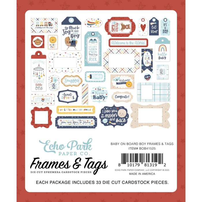 Echo Park Baby On Board Boy - Ephemera Frames & Tags