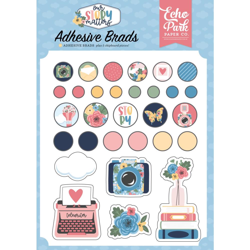 Pack of 25 adhesive brads and 5 chipboard pieces.
