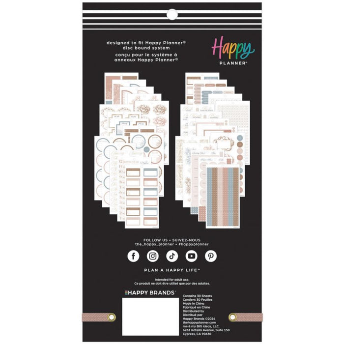 This Love Blooms Wedding sticker book was made for planning your big day! Plan each step towards your walk down the aisle with this pack for Big size planners. Pair with any of our wedding Happy Planners and take the guess work out of event planning. It features soft florals accents and colours for a calming and creative planning experience. 30 sheet sticker book with 1291 Love Blooms Wedding themed stickers. Fitted for Big size Happy Planner items.