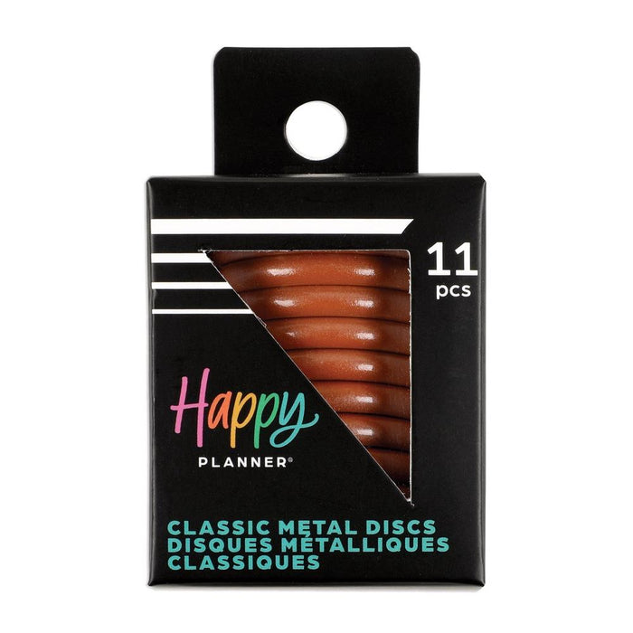 The Happy Planner discs are some of the best planner accessories, making it easy to customize your Happy Planner, create additional planners, notebooks and so much more. Each package includes ELEVEN (11) discs. Heart cutout detail at the center, Chai Spice color metal discs. Dimensions: 1.25 inches.