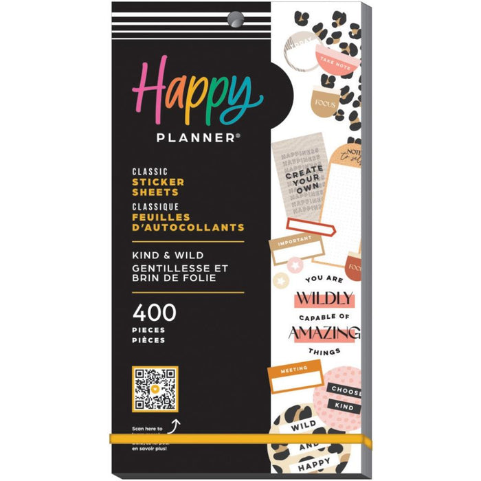 30 sheets with 400 stickers. Add these stickers to your Happy Planner, guided journal, notebook, Memory Keeping Journal, or bullet journal to help you prioritize your tasks and decorate your spreads! Create exotic spreads with stickers that animal print accents and positive messaging. 9"x4.75".