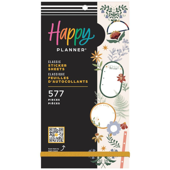 This Forest Flowers sticker value pack was inspired by the beauty of the natural world. 30 sheet sticker book with 577 Forest Flowers themed stickers. Fitted for Classic size Happy Planner items. Matte paper stickers and decorative stickers to add to your monthly calendars and weekly spreads. Combination of memo boxes, floral flourishes, and checklists. Dimensions: 9 x 0.25 x 4.75