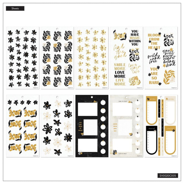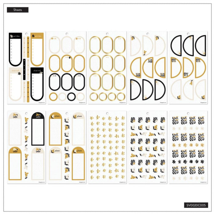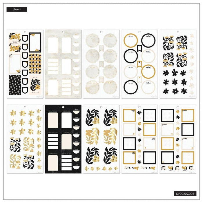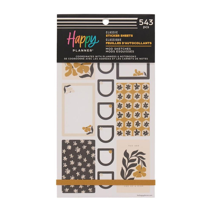 Elevate your planning with the Mod Sketches Classic Sticker Book. Designed for contemporary planners who appreciate minimalism with a touch of florals, this sticker book is perfect for decorating Classic Happy Planners, notebooks, and bullet journals. Featuring a mix of memo boxes, floral foil accents, and decorative elements, these stickers help you plan with style and functionality.