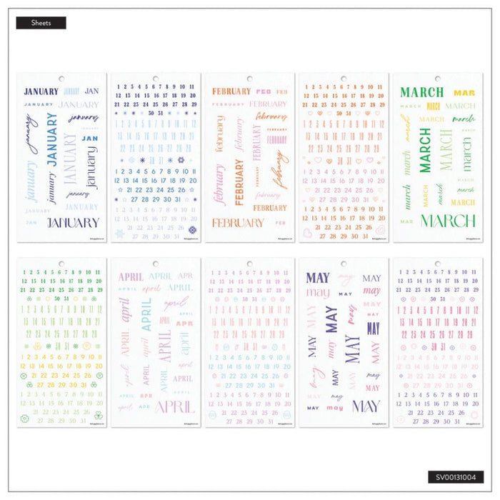 This Colourful Months Classic sticker pack is perfect for our planners who like to use our undated Happy Planners! Skip dating by hand and make it simpler with monthly labels and complementary dates in all sorts of hues. 30 sheet sticker book with 2218 Colorful Months themed stickers. Fitted for Classic size Happy Planner items. Matte paper stickers and decorative stickers to add to your monthly calendars and weekly spreads. Features monthly labels and dates to use in any undated Happy Planner!