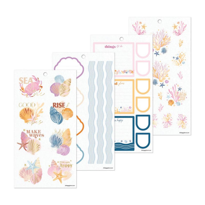 Get ready to ride the wave of creativity with the Shell Yeah! Sticker Book. Designed to complement your Classic size Happy Planner, this sticker book features seaside-inspired designs with soft colors, shellfish accents, and shimmering foil details. Whether you're planning your next adventure or adding a touch of coastal charm to your spreads, these stickers bring both style and function to your pages.