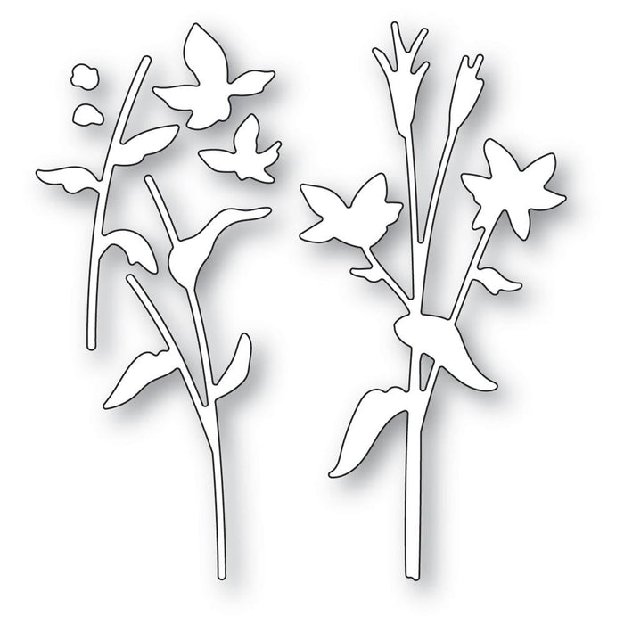 100% steel craft die for use on cardstock, felt, fabric and more. Can be used in most leading die cut systems. 0.5 x 0.5, 0.8 x 0.7 inch flowers, (2) 0.2 x 0.2 inch middles, 0.9 x 1.9, 1.1 x 2.7, 1.8 x 3.7 inches stems