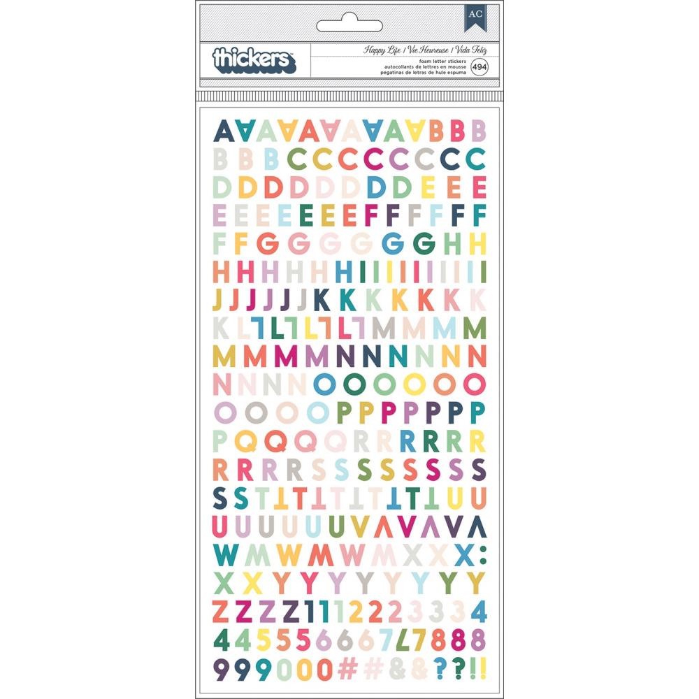 Foam letter stickers. Uppercase and numbers, approx 1cm tall. 494 pieces. One side coloured letters, the other side plain.