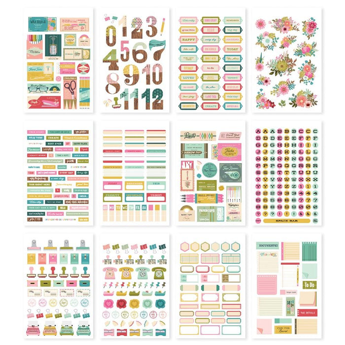 12 sticker sheets approx 4"x6.5", 452 pieces.