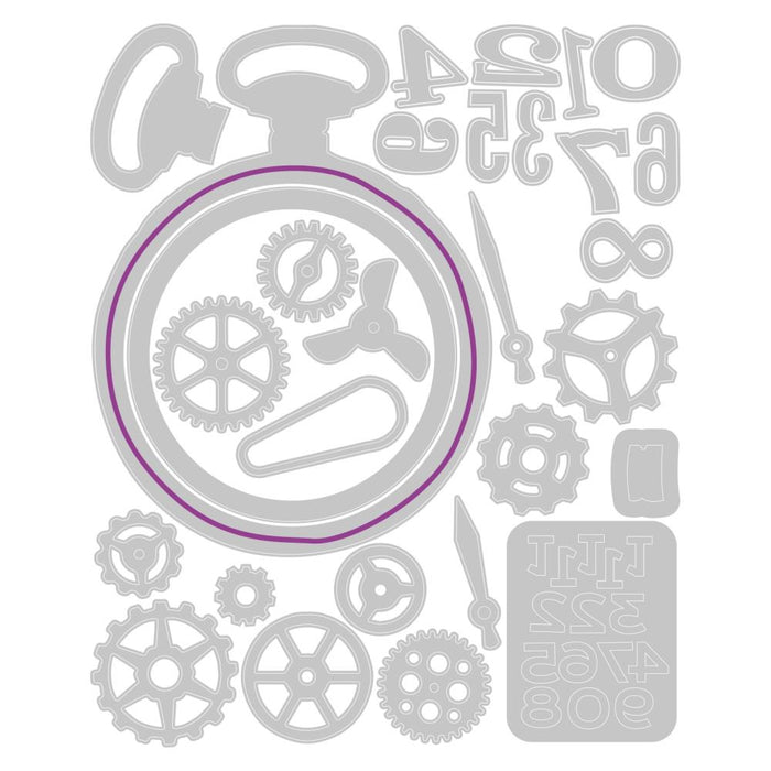 Unleash your creativity with this Vault Watch Gears die set designed by Tim Holtz®. This 29 pack die set features a wide variety of cogs, pins and numbers. This is the perfect set to create your own unique makes whether you are creating cards, home decor or scrapbook layouts, the possibilities are endless. Watch is approx 4" high.