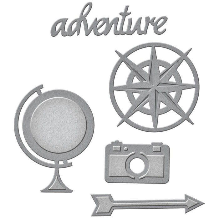 Contains 5 die templates: Compass is approx 1.5"x1.5", globe approx 1.3"x1.8".