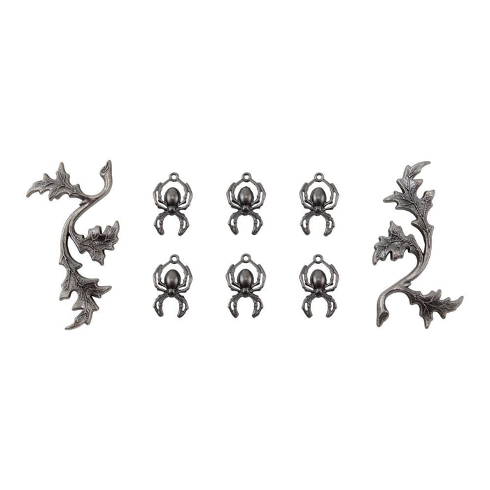 When your next Halloween project requires something a wee bit wicked, this pack of metal spiders and tree branch charms will do. Accent a Vignette Box, Halloween invitations, cards or party dcor projects. This package contains 8 pieces constructed of metal. Branches measure 2 inches in length and Spiders measure 7/8 inches.