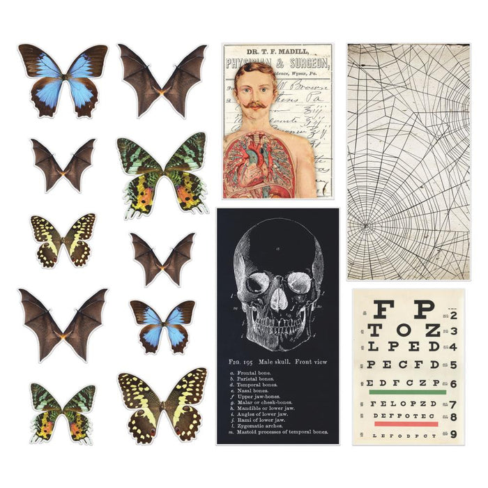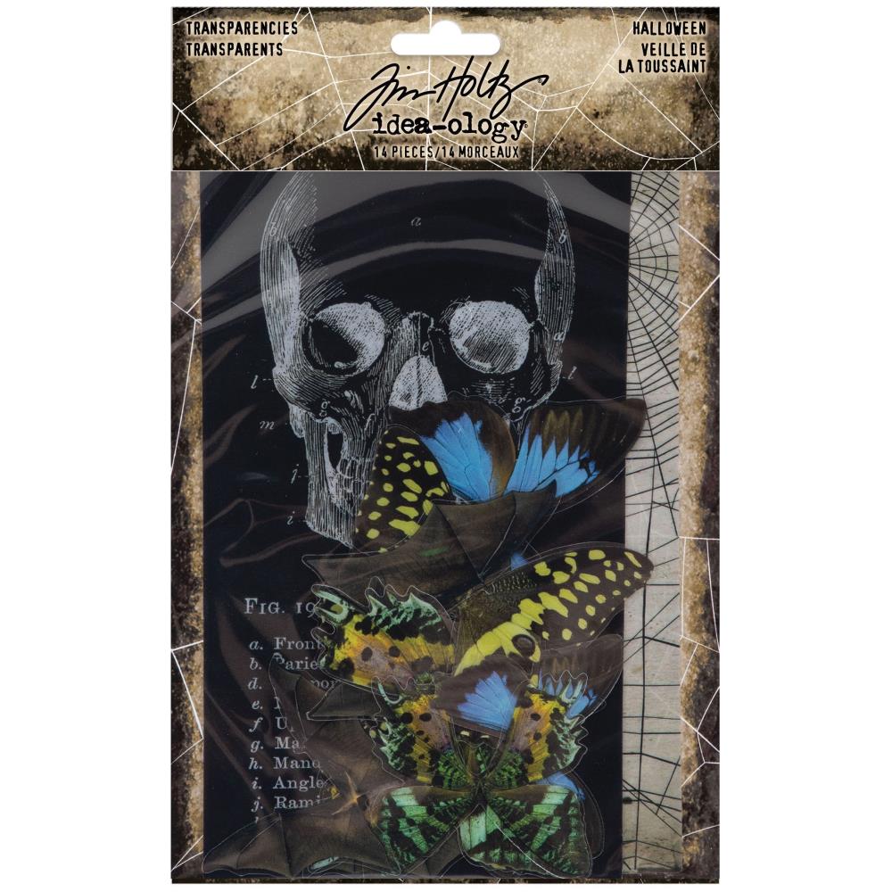 The Tim Holtz Transparencies Halloween pack is a collection of printed transparent ephemera that will accent your project with spooky vibes. 14 pieces. Elements range in size from 2.13 x 1.88 inches to 3.75 x 7.25 inches